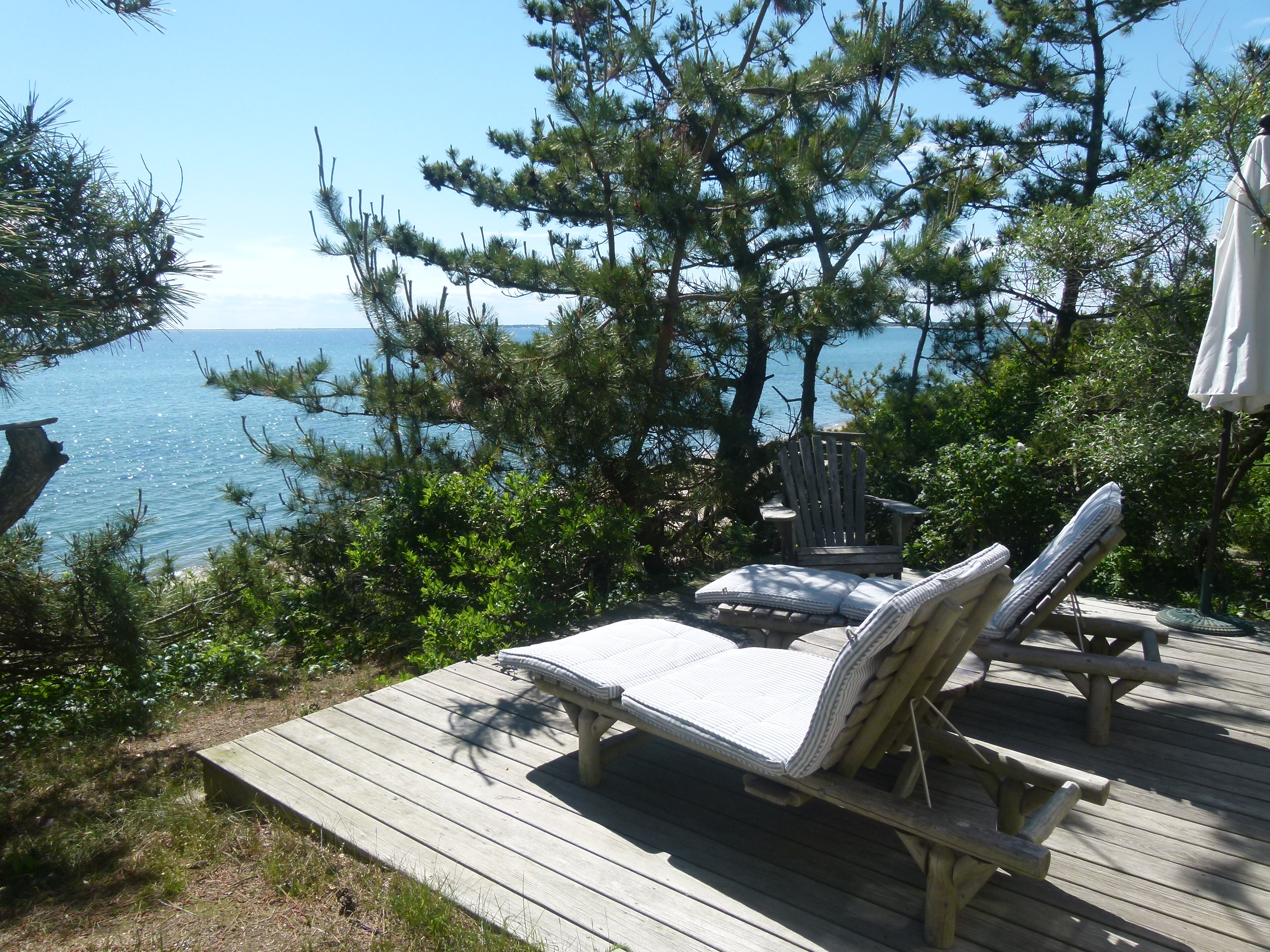 Behind the cottage there is a very private back garden surrounded by trees and dunes with seating arrangements, a charcoal grill and a picnic table for outside dining. Additional features are a completely private outside shower that faces the bay and a stereo system that plays both in the living room and on the rear patio.