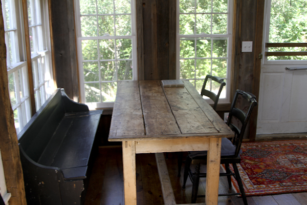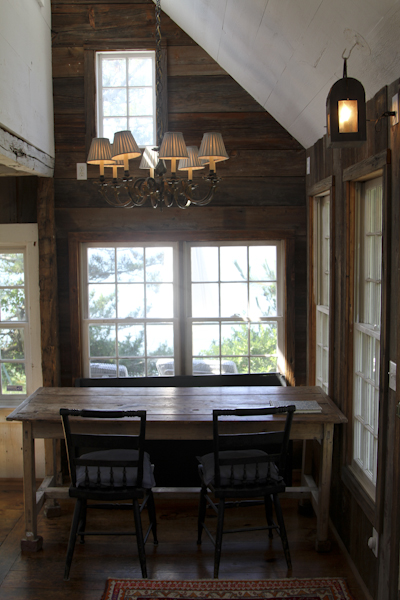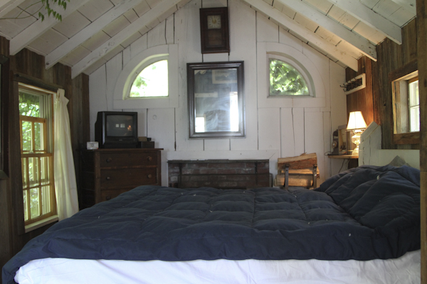 The BEACH COTTAGE is located directly at the top of a dune and has a set of private stairs to the bay beach where you can experience almost total privacy. The BEACH COTTAGE has a small entry way with a sitting area for dining at an antique table that can seat 6. There is an open plan kitchen area with refrigerator, electric stove, microwave, coffee maker and all your kitchen needs. Living room area opens to the kitchen with an old comfortable couch and an equally comfortable chair that face a wall of windows on the bay. There is a 36″ TV and DVD player as well as a Vermont Casting old fashion gas stove with glass windows for off season warmth and ambience.