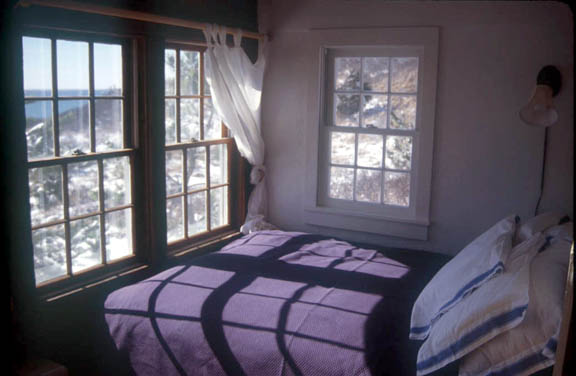 The Shack is a small romantic love nest. A favorite with couples. It’s a one room open plan studio featuring; a full mini kitchen, microwave, toaster oven and 1/2 fridge with electric 4 burner range top. Air conditioning, stereo, DVD/CD player, seating area for two, double bed, couch and a mesmerizing wall of windows on the Bay. It has an indoor shower, toilet and sink in the bathroom. The outdoor patio becomes part of the living area of the cottage featuring a seating area, picnic table and out door charcoal grill.